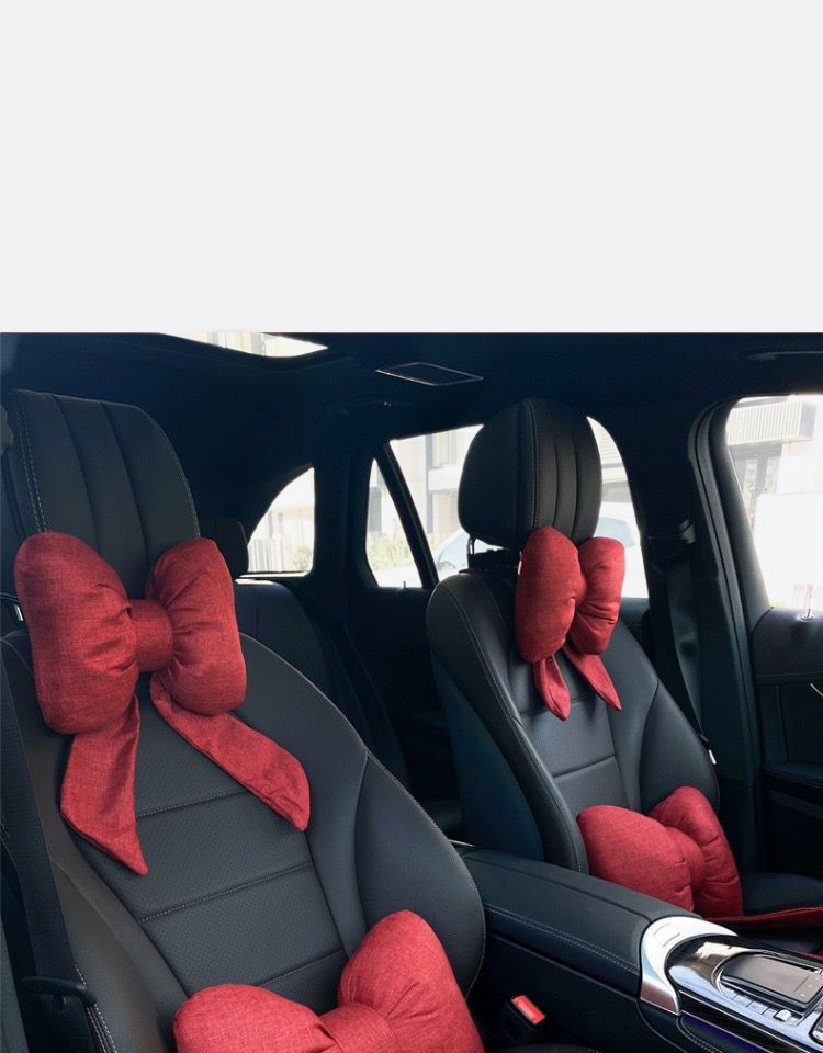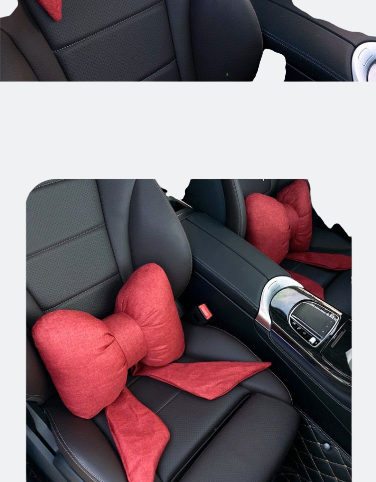 مسند رأس السيارة مع شريط فيونكة، ودعم قطني لمقعد السيارة